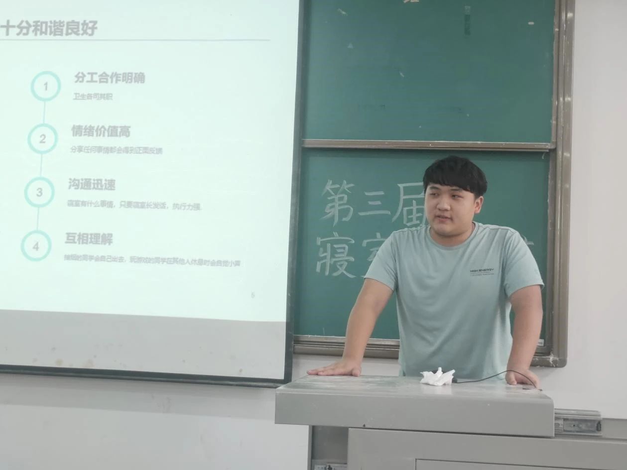 来自的3栋326参赛选手:李国庆,在本次本次寝室文化节中采用ppt和vlog的形式介绍他们充满和谐有序的寝室,并通过生活之点滴,绘出阳光之篇章。