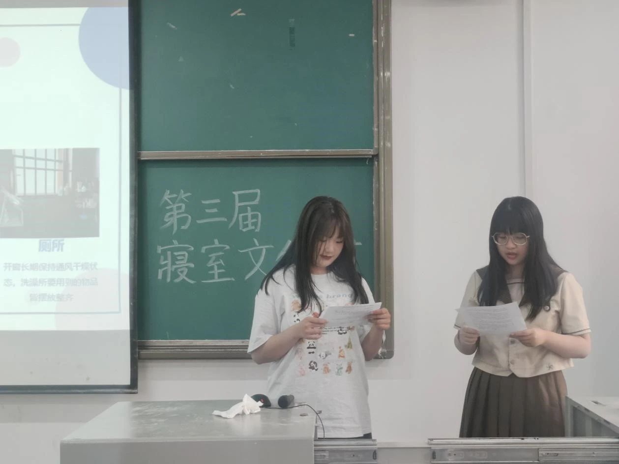 担任本次比赛的评委有评委:员工会副主席王健康 ,体育部部长韦年凯, 组织部部长刘明宇, 秘书部部长程昭。以下便是我们这次参赛的优秀寝室成员: