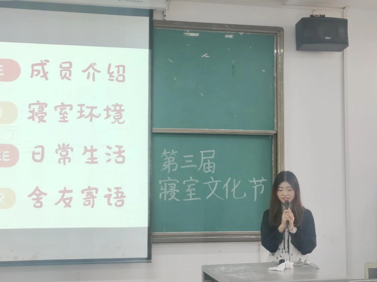 来自8栋625的参赛选手:鲁亮晶,在本次本次寝室文化节中采用ppt和vlog的形式介绍她们的寝室,并通过一段轻松愉快的“VCR”展示了她们生活点滴和寝室的整洁有序。