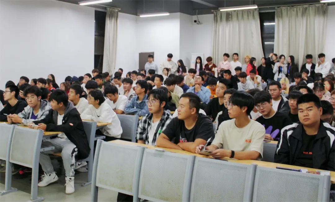 紧接着,岑煦东同学从创业的初衷,概念和构思,自己的实习经历和工作经历阐述自己的创业历程,并提出了未来市场出现可能性机会的四大领域:科技创新、医疗社会服务、可持续发展和数字化转型。他就自己的项目研究经验做了相应的分析和计划,他鼓励着想要创业的同学们不要畏惧创业的风险,勇敢去做,在积极寻找自己所热爱的领域,发挥创新的思维和精神,并将它们付诸实践,教室响起一阵掌声。