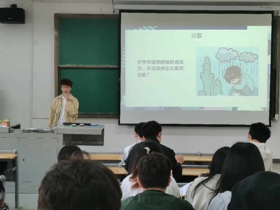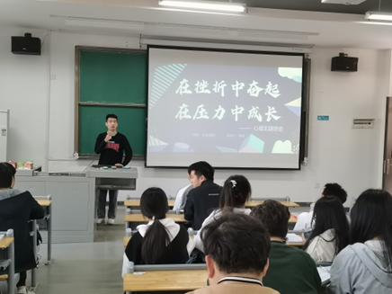 为进一步提高老员工抵御挫折和压力的能力,促进老员工的身心健康,宣传普及心理健康知识,深入开展心理健康教育,2022年11月3日上午10:00,球友会计科2002班心理委员陈晗同学作为主讲人,在教3-204开展了主题为“在挫折中奋起,在压力中成长”的心理主题班会。