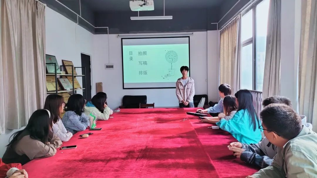 接着,葛生光同学带领大家学习了宣传部的工作内容,包括拍照、写稿和排版。对于拍照的学习,他进行了重点的讲解。他说道:“在不同的场景或人物中,不同的拍照方法所呈现出来的效果也是不同的。”他向新干事们详细介绍了各种场景下常用的拍摄手法,并讲解了一些拍照技巧和艺术呈现的方式。在写稿方面,他围绕不同类型的推文做了格式分享,讲解了新闻稿件的撰写以及文案推送的相关内容。讲解脉络清晰,从全局要求到细节刻画,从格式规范到逻辑结构,让新成员们充分理解并掌握了写稿的技巧。讲到微信公众号推文的排版方式和技巧时,他讲述了,封面的的选取不仅要有个性,而且还要符合活动主题;推文的排版一定要使推文看起来简单明了,层次分明。希望大家能在团总支这个大家庭有所成长,有所收获。
