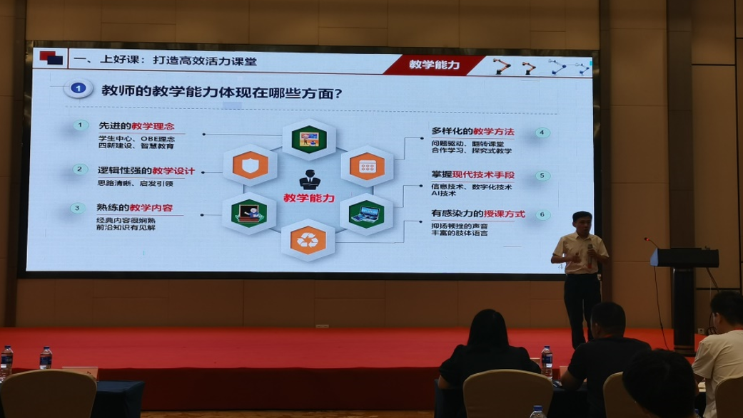 会议伊始,武汉科技大学侯宇教授以“提升教学能力,创新教学方法,突破教学竞赛”为题,为与会教师带来了一场深入浅出的讲座。侯教授结合自身丰富的教学经验,详细阐述了如何通过创新教学手段打造高效活力课堂,首先要有以员工为中心的OBE教学理念,同时具备逻辑性强的教学设计能力,掌握多样化的教学方法和现代技术手段,用极富感染力的授课方式来激发员工的学习兴趣。他强调,在当今教育快速发展的背景下,提升教学能力不仅意味着掌握扎实的专业知识,更要求教师们能够紧跟时代步伐,不断创新教学方法,以激发员工的学习兴趣和潜能。