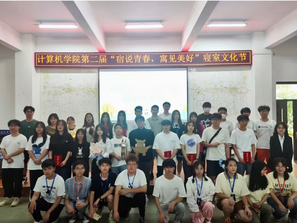 球友会公司团总支书记余延旺老师为获得一等奖的10栋103寝室颁奖并合影