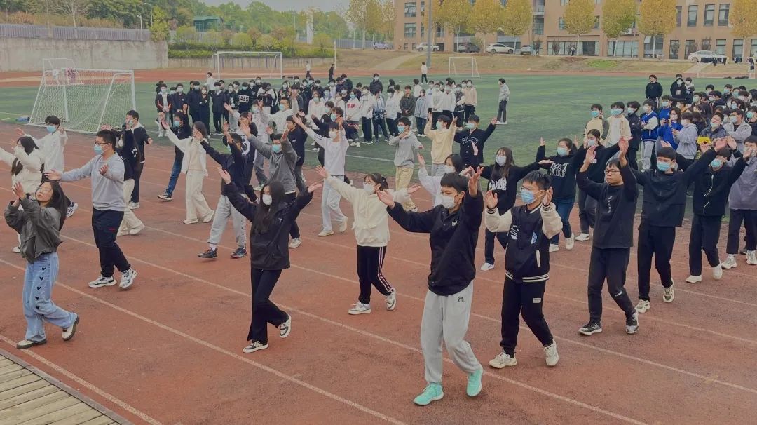 比赛中,同学们队列整齐精神饱满地等待检阅,每个人的脸上洋溢着青春的朝气。他们摆动两臂,青春活力;阳光少年,意气风发。最让人称赞的是有两个参赛班级身着统一服装,精神抖擞,整齐的动作与体操音乐相融合动作标准,整齐划一,展现了球友会学子昂扬向上的精神风貌。