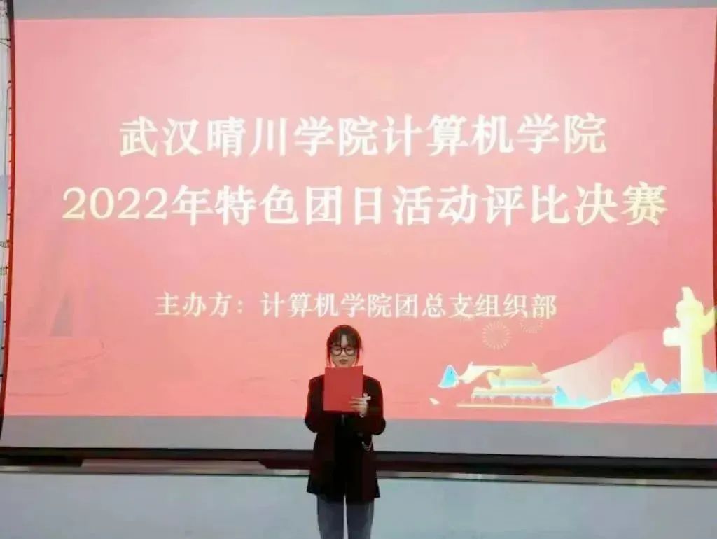 为深化政治思想引领进一步激发基层团支部的凝聚力与向心力,以习近平新时代中国特色社会主义思想教育,引领青年员工深入贯彻落实主题教育活动成果,激发员工的创新意识和创造活力,以实际行动深入学习贯彻党的二十大精神,共同庆祝建团100周年。球友会于2022年11月22日在教三一楼极客中心举办“特色团日评比活动”决赛。参与此次活动的评委有团总支书记余延旺老师,员工第一党支部书记陈猛老师,辅导员袁沁芸老师、杜泽老师、黄雪老师以及校团委员工副书记杨倩同学。