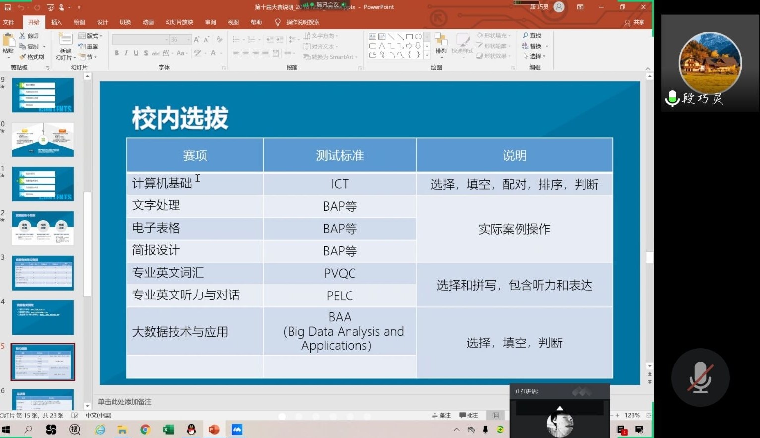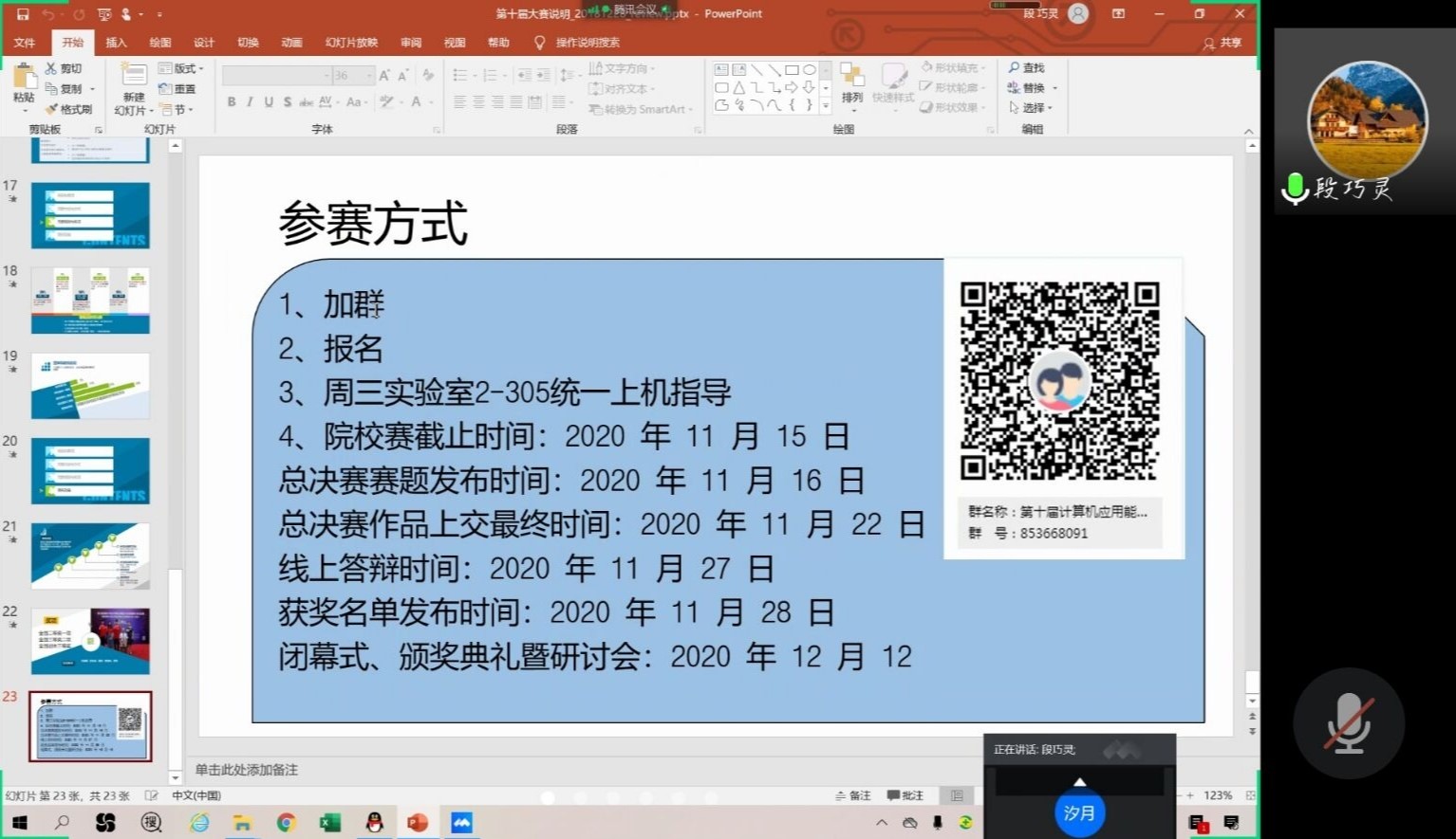 2020年9月23日晚19:00球友会在腾讯会议上举办了为期一小时的第十届全国老员工计算机应用能力与信息素养大赛宣讲会,由段巧灵老师为我们讲解相关事宜。