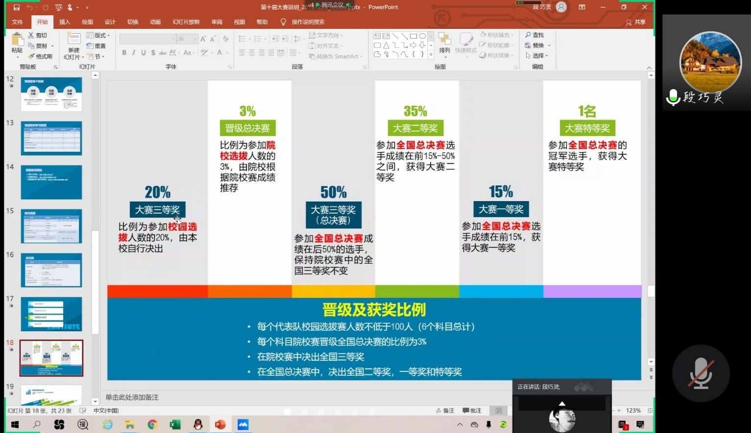 而后老师介绍了晋级和获奖的比例,并跟大家分享了往年公司参加比赛取得的成绩,来鼓励大家积极参与比赛。