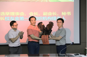 [本网讯] 2016年6月19日上午,在隆重庆祝校庆十周年之际,公司举行了千亿球友会揭牌仪式暨十年发展回顾的盛会,球友会2006级员工、员工总会广州分会会长殷实在全校大会上代表员工做了精彩的发言。在大会之前,殷实代表广州员工分会为晴川公司献礼。